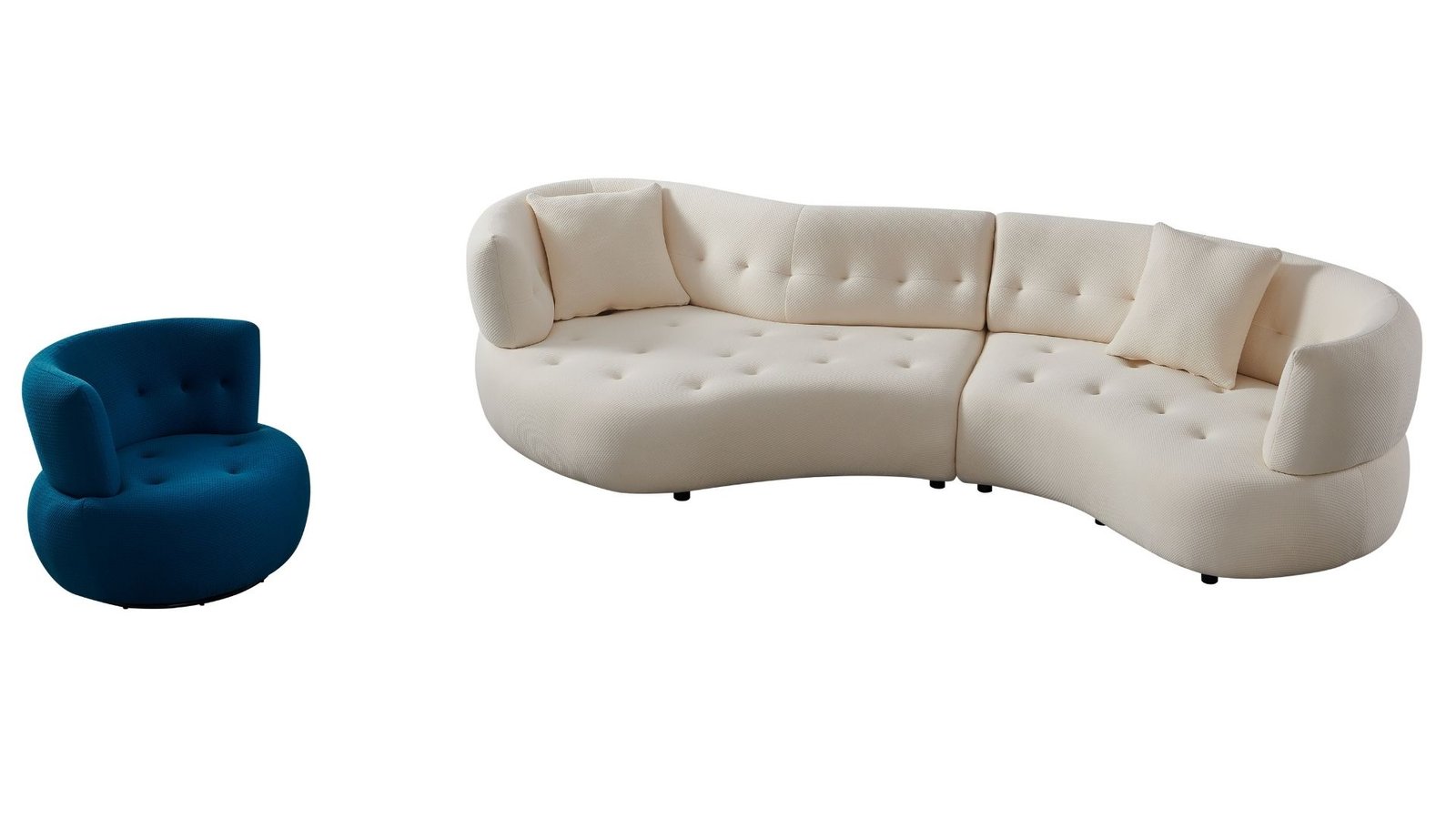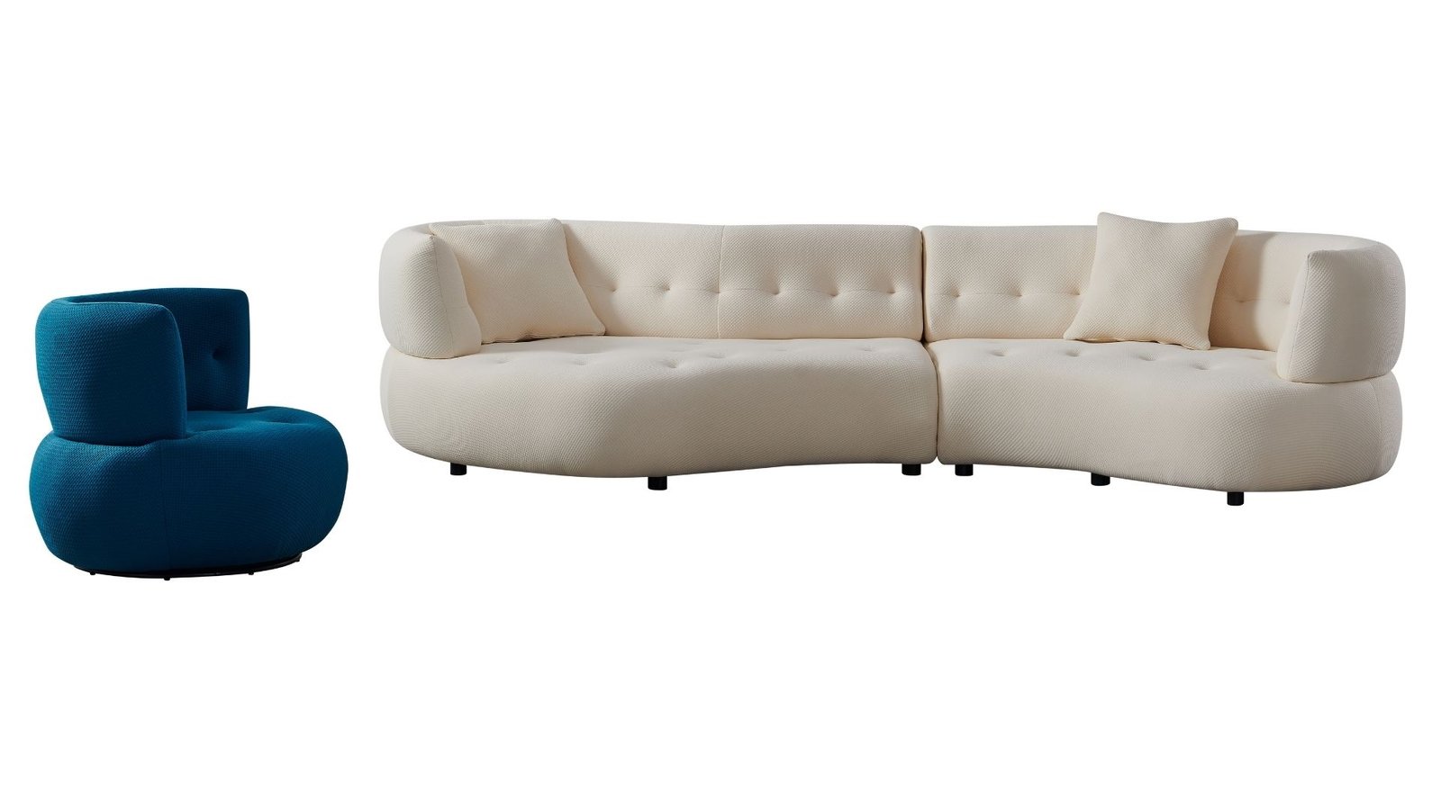 Découvrez l’élégance absolue avec l’ensemble CURVA, composé d’un canapé design en tissu blanc cassé et d’un fauteuil assorti bleu profond. Une création signée De Pascalis Mobilier, symbole du design italien contemporain. Ses formes organiques et son confort exceptionnel apportent une touche artistique et raffinée à tout salon moderne.