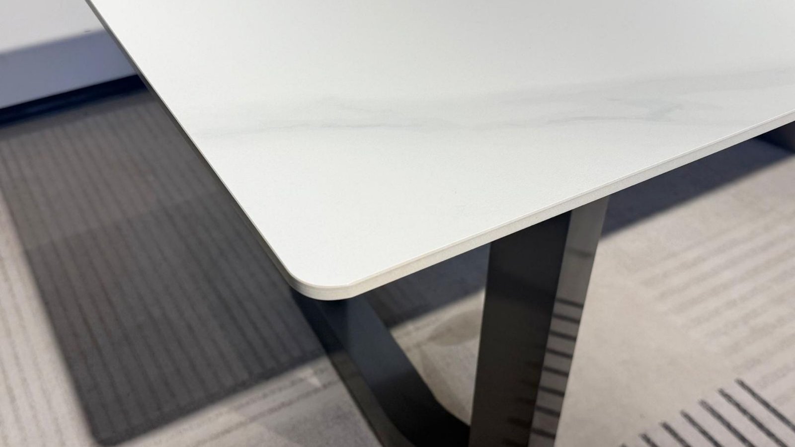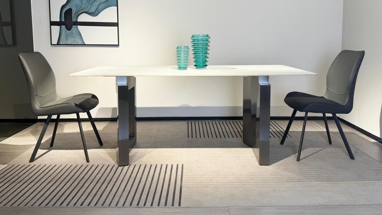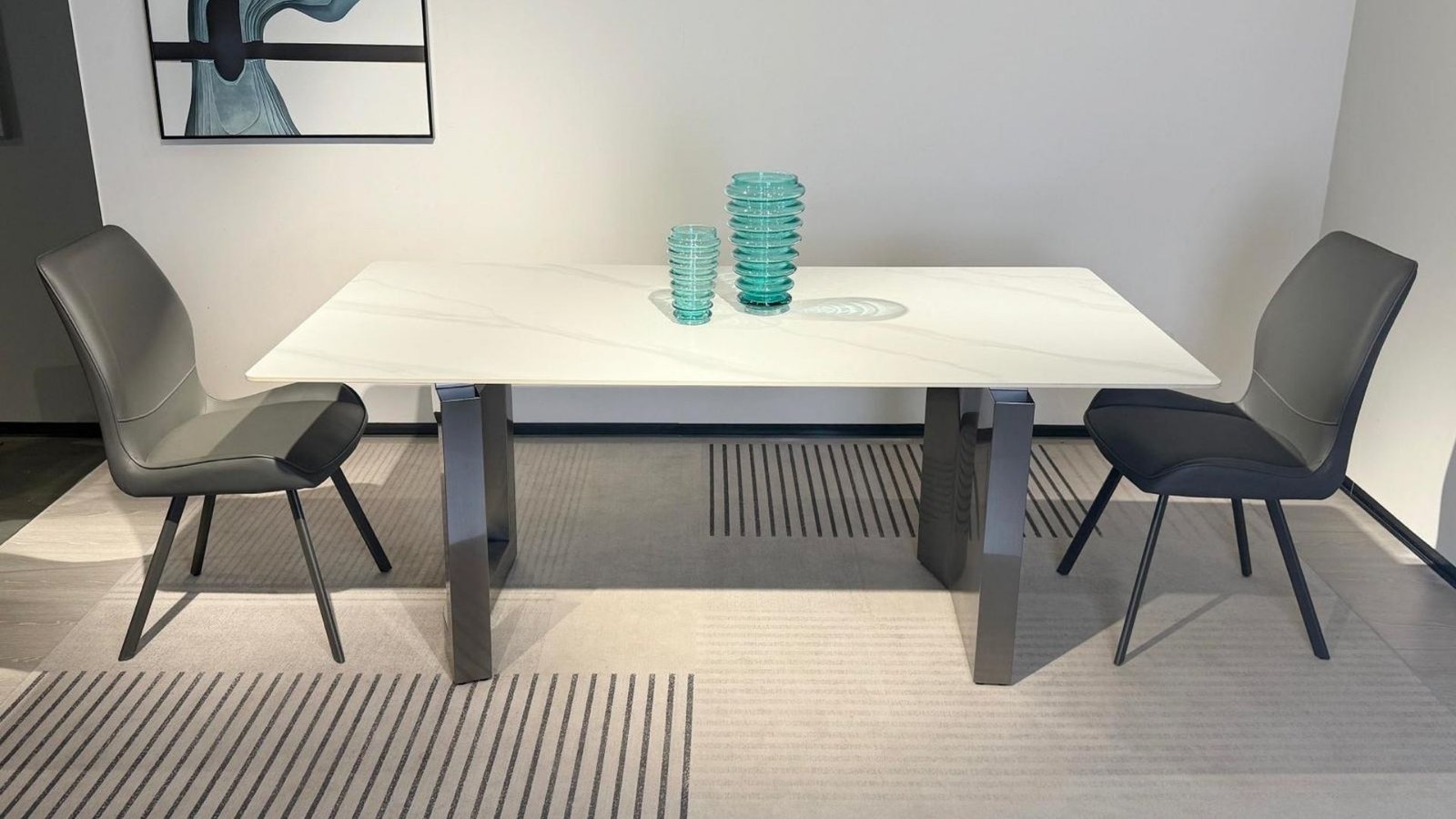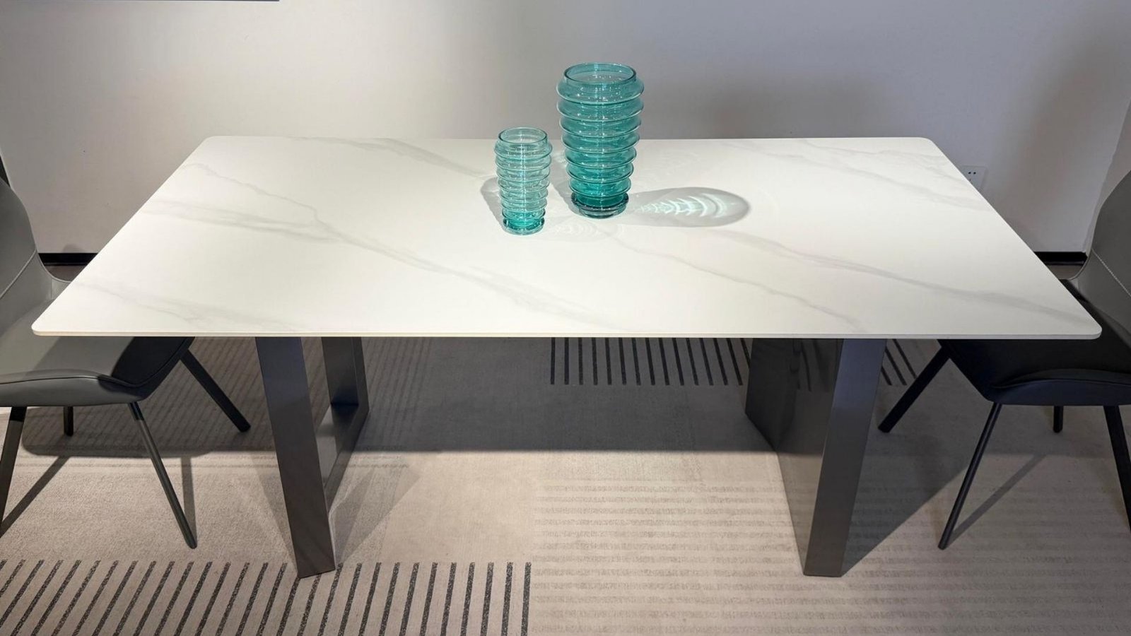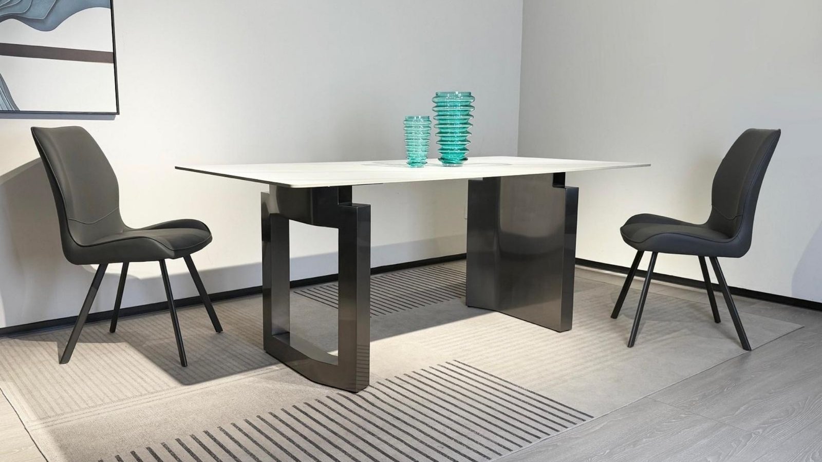 Lignes architecturales, contraste élégant et modernité affirmée : la Table à manger rectangle moderne PRISMA allie style et fonctionnalité dans une pièce unique. Avec son plateau blanc effet marbré et ses pieds géométriques gris foncé, elle devient le centre de gravité d’une salle à manger contemporaine. Un design audacieux, des finitions impeccables et une résistance à toute épreuve font de PRISMA une table aussi belle que pratique pour accueillir jusqu’à six convives.
